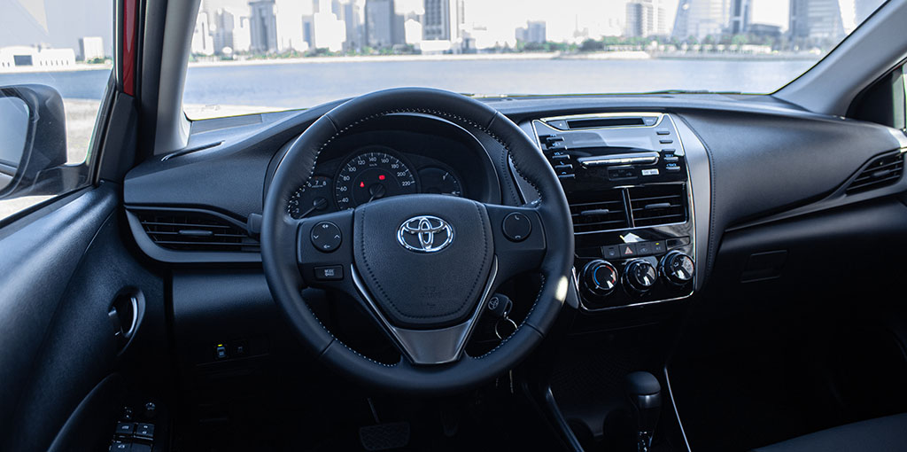 تميز بمظهر رياضي أنيق مع Yaris سيدان التي تمنحها الخطوط التصميمية الأمامية والجانبية طابعاً شبابياً، فيما يضفي الشبك الأمامي الجريء عليها لمسة خاصة لحضور ديناميكي مميز.