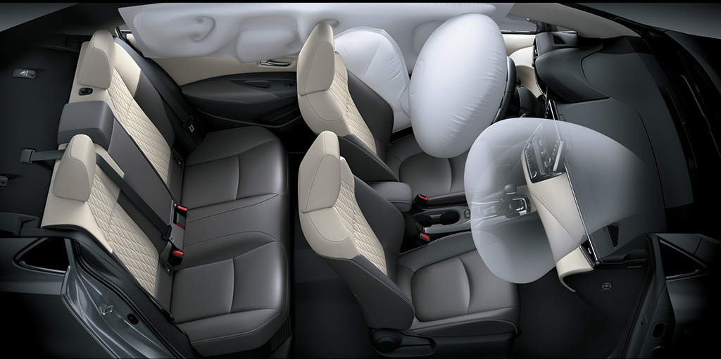 Safety is priceless. Corolla is equipped with SRS (Supplementary Restraint System) airbags to protect the driver and front passenger from the impact of a collision.
